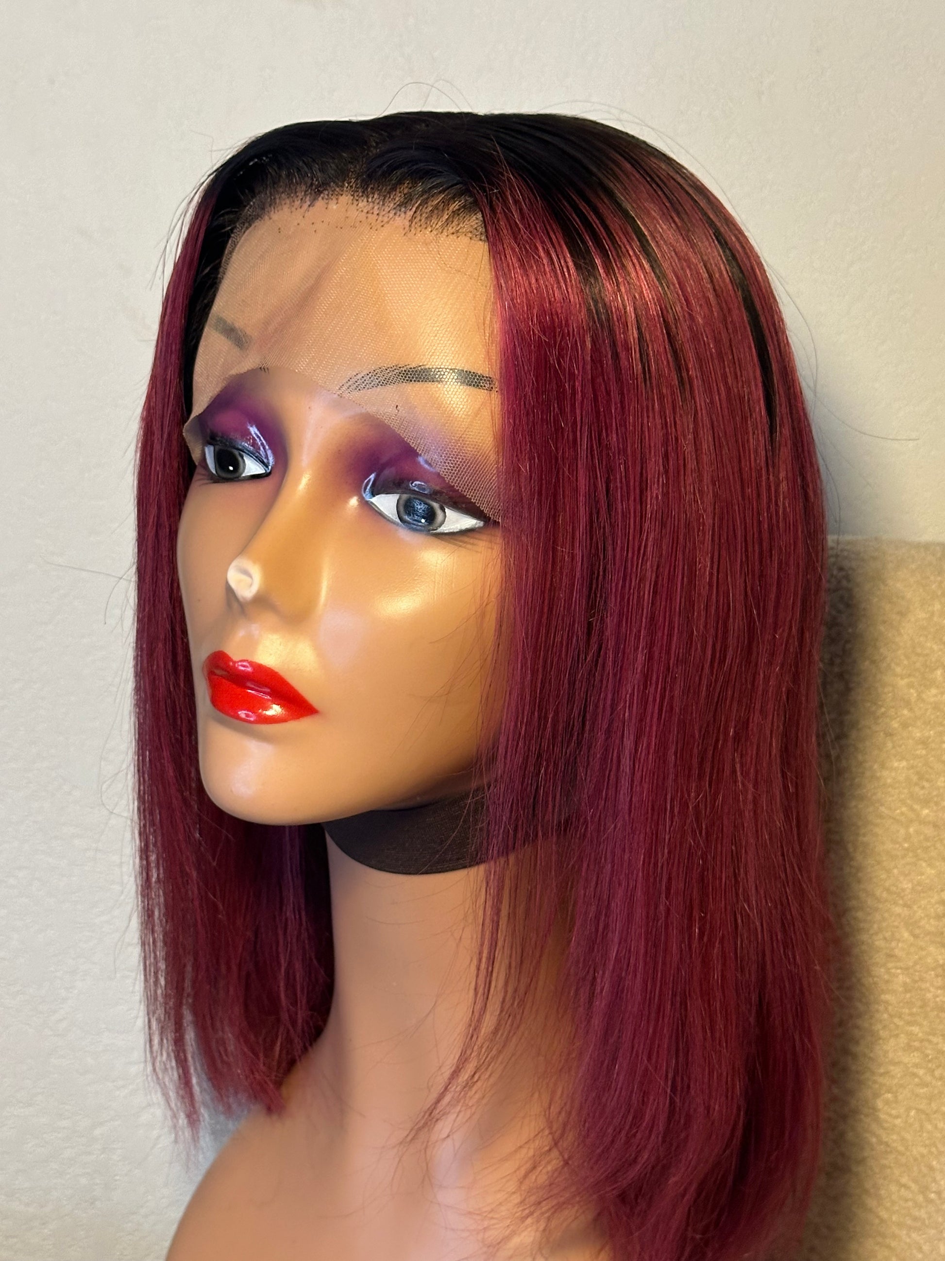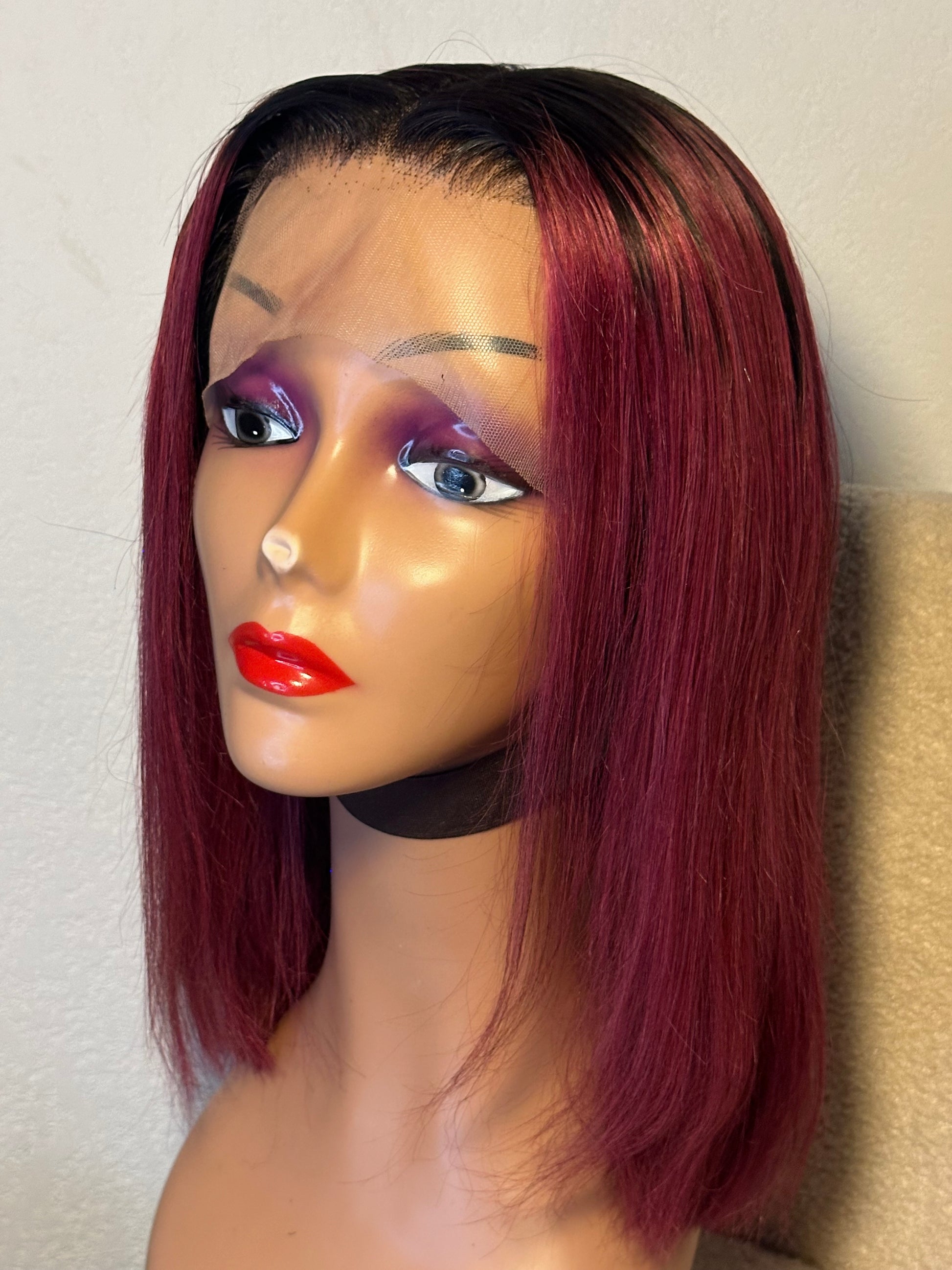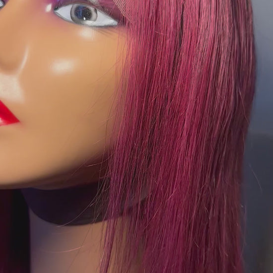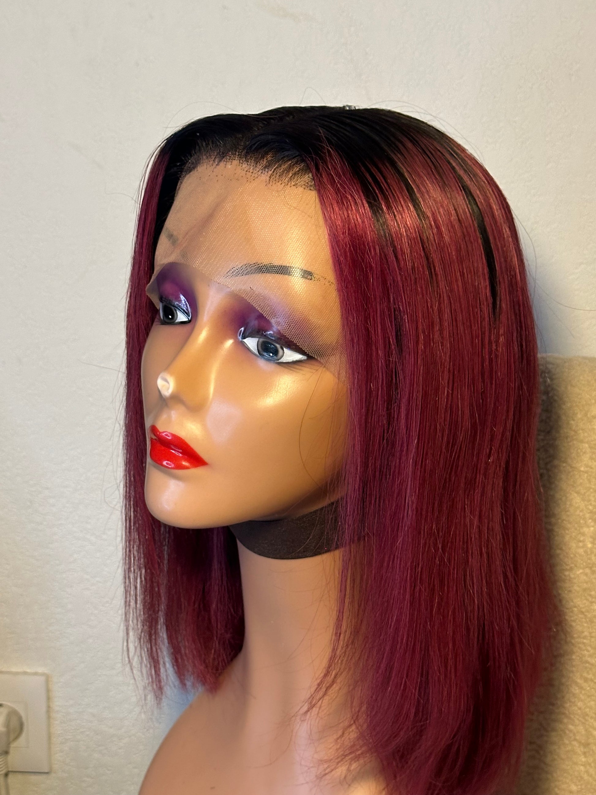 Perruque Lindsey 12 pouces mèches brésilienne noir bordeaux