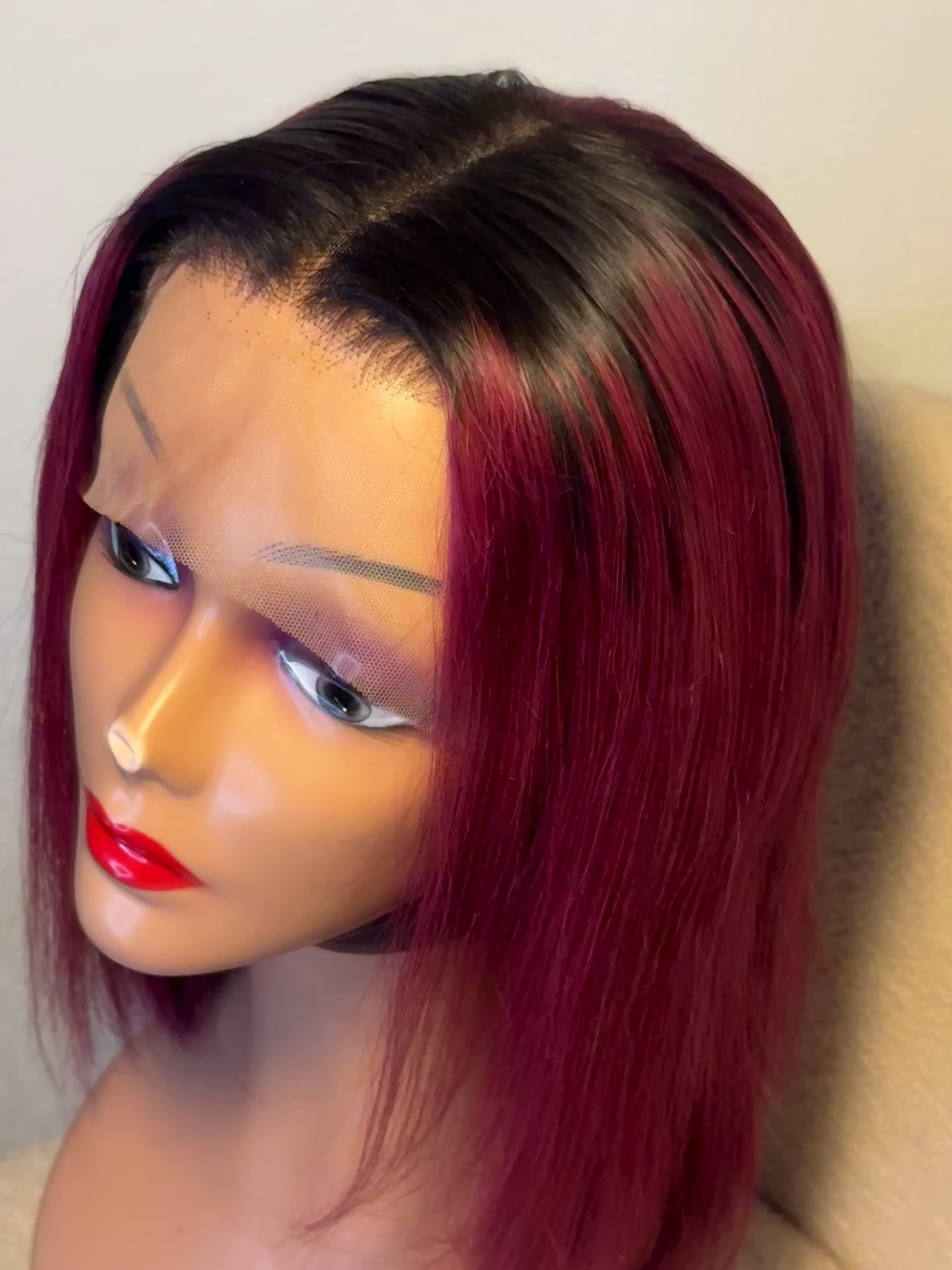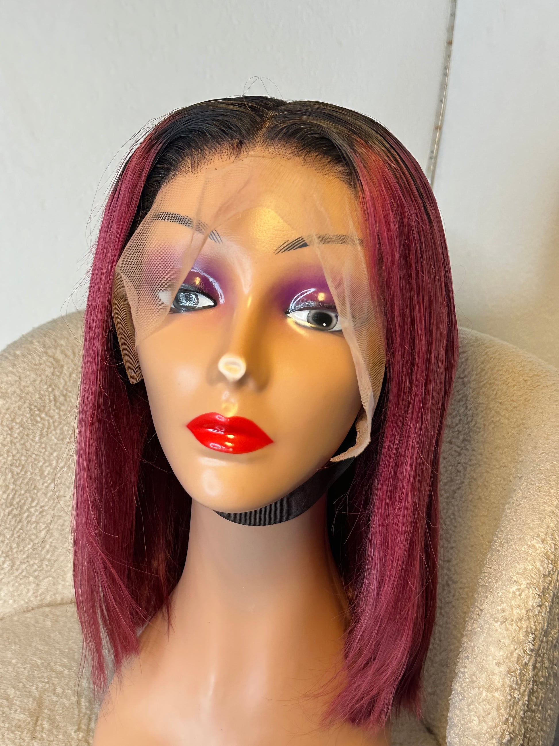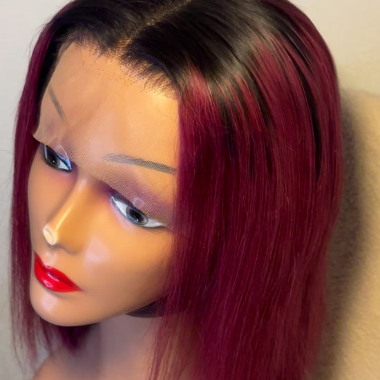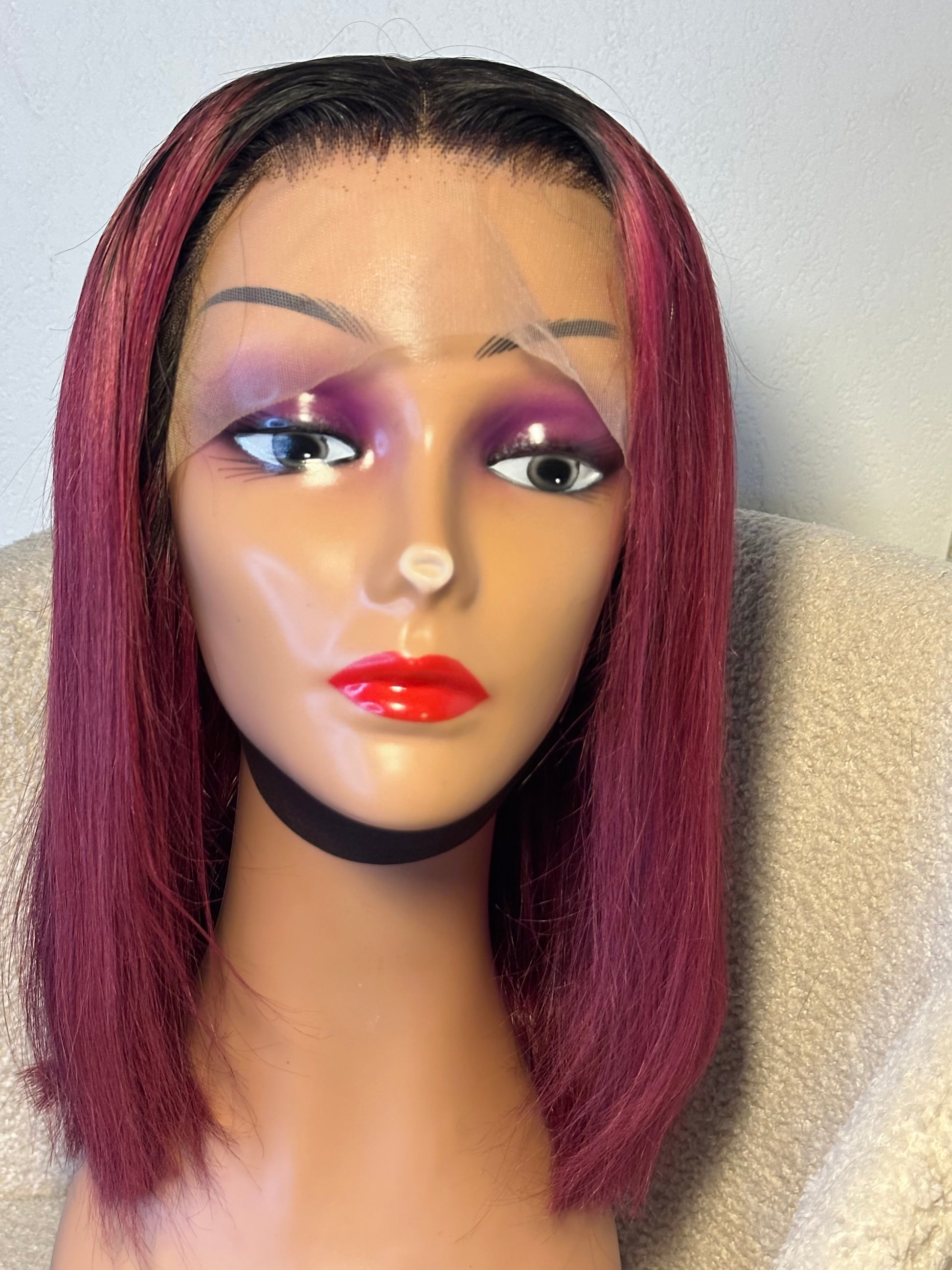 Perruque Lindsey 12 pouces mèches brésilienne noir bordeaux